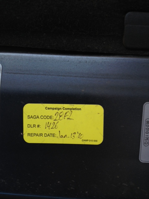 It is a sticker put by the dealer (DLR #1426) stating that the recall campaign 28F2 was done on your car.