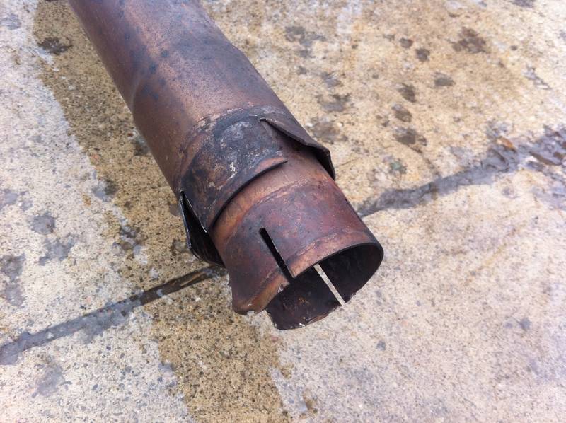 The bad: It was seized on to the original downpipes, so the downpipe adapters and about 2" of the front of the exhaust is deformed. It is not a big deal as any competent exhaust shop or installer can still install it.