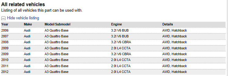 All the details are in the ad but it was used for my 2009 A3 2.0T Quattro Sline.