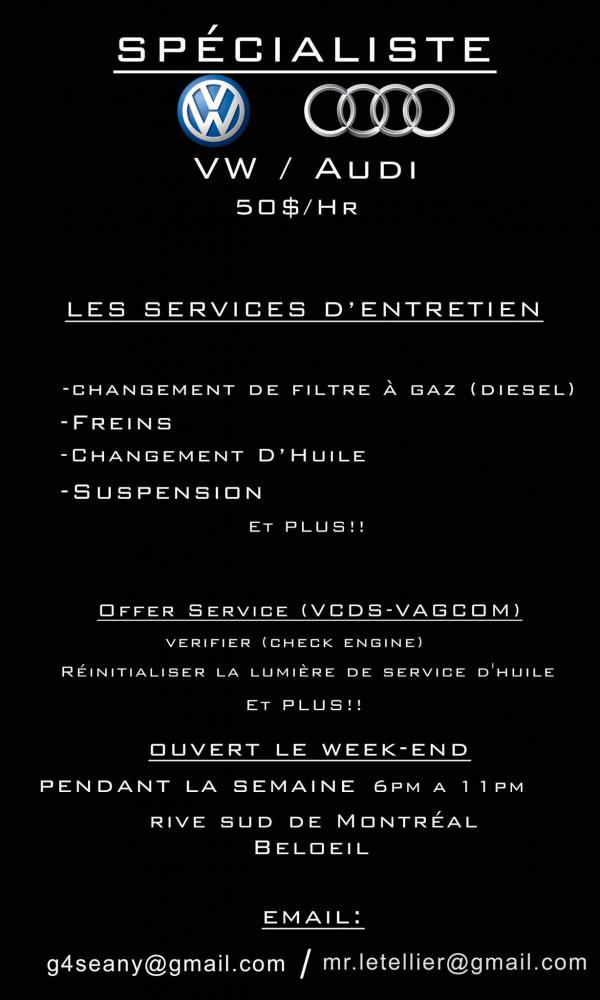 AUDI/VOLKS Garage 50$/hr - South Shore of Montreal.