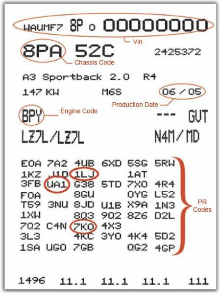 My car has been sitting in the shop for several months because my ABS module needs to be reprogrammed. I have been told by my mechanic that there is a CODE needed, that is missing in my car. I am missing the "Vehicle Data Label"...that has the Production Codes (PR-Codes) on my 2008 Audi TT MK2. It is the sticker near the spare tire well on the floor of the vehicle. The duplicate of that sticker is on the first page of the Service/Maintenance Manual in the Owner's Manual. ( Of course I don't have either ) Does anyone know "how" or "where" I can get a copy of this information or a way to program it without the sticker? I've already tried the Audi dealerships in my area by providing them my VIN. I will pay the assistance.